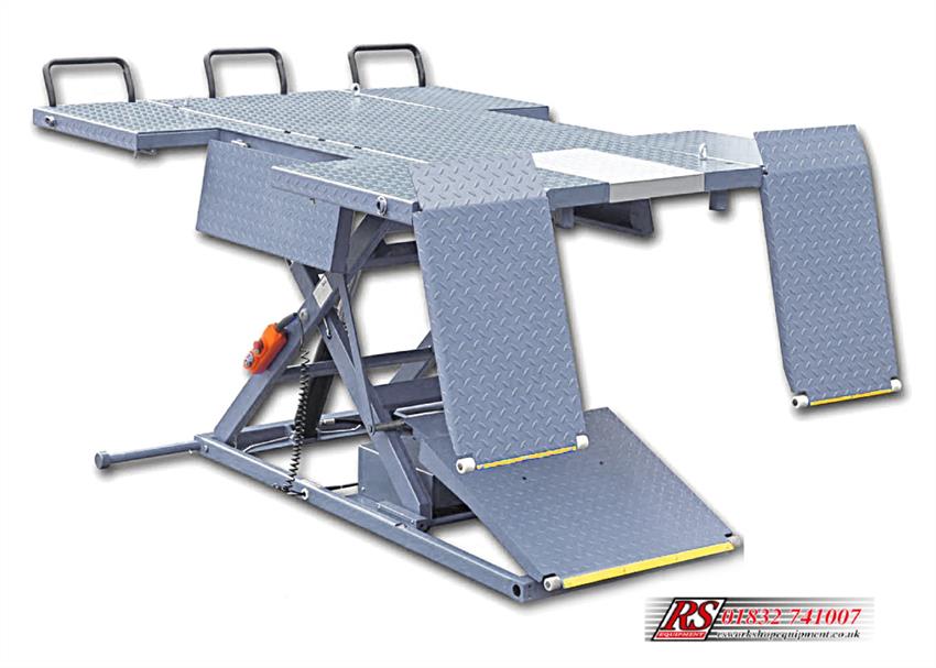 The RS1000UTV hydraulic lift is an evolution of the 1000kg scissor lift that provides a larger deck of 1.65 x 2.25m with drop down sections to the rear and sides.